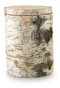 Bjørke urne laget av en del av bjerkestammen. Slik naturen er blir ingen urner helt like.