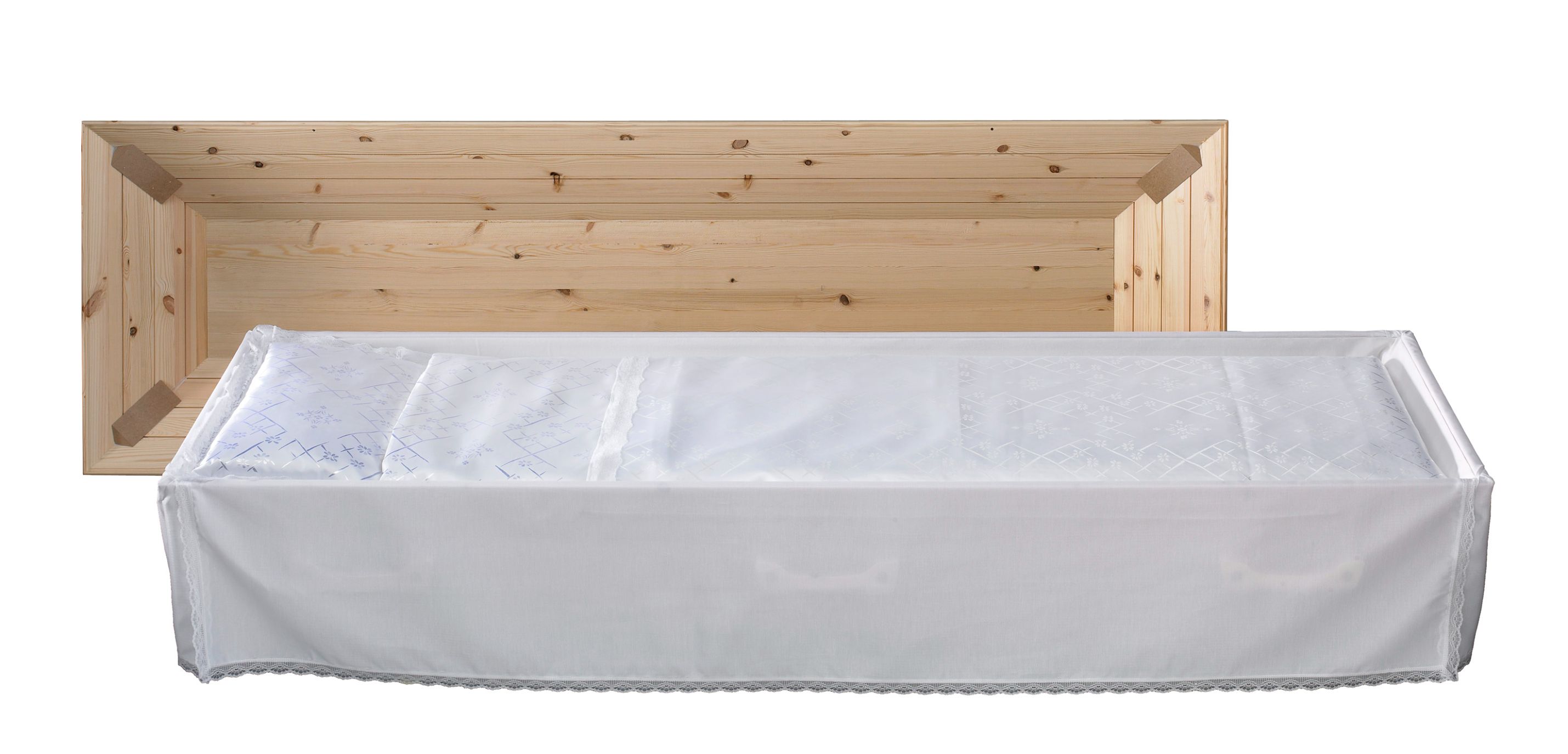 Tradisjonell kistemodell påkostet utførelse. Produsert i furu. Finnes i mosegrønn og grå.