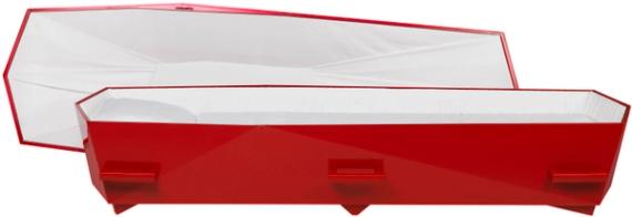 Designet av Jacob Jensen. Kiste av bjørkefiner i høyglans i fargene rød, svart og hvit.
